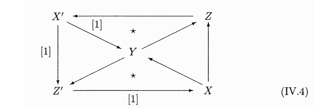 我们有两个好三角 $Y \to Z \to X’\to Y[1]$ 和 $X \to Y \to Z’ \to X[1]$