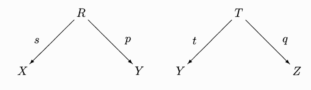 (b) 扩张条件:对于任意 $f\in \text{Mor} \ \calB, s\in S$, 存在 $g \in \text{Mor} \ \calB, t\in S$, 使得下图交换