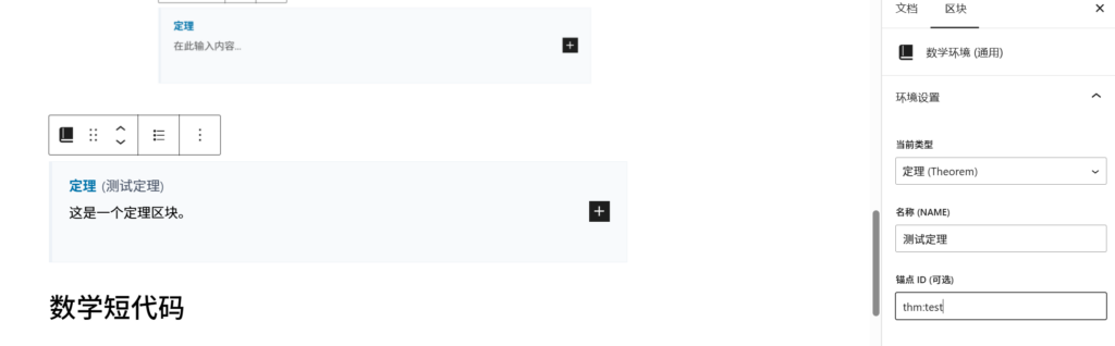 右侧可以填入定理名称和id, 这个 id 是用来索引的。